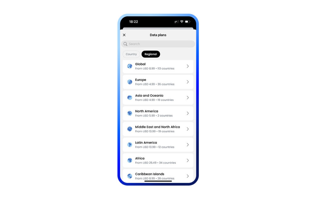 You can grab a data plan for a single country, or go bigger with a regional package if you’re planning a trip across multiple countries. This means you won’t have to purchase and activate a new plan every time you cross a border. You can pick from a variety of packages, including the global option, which covers 113 countries (as of the time of writing).